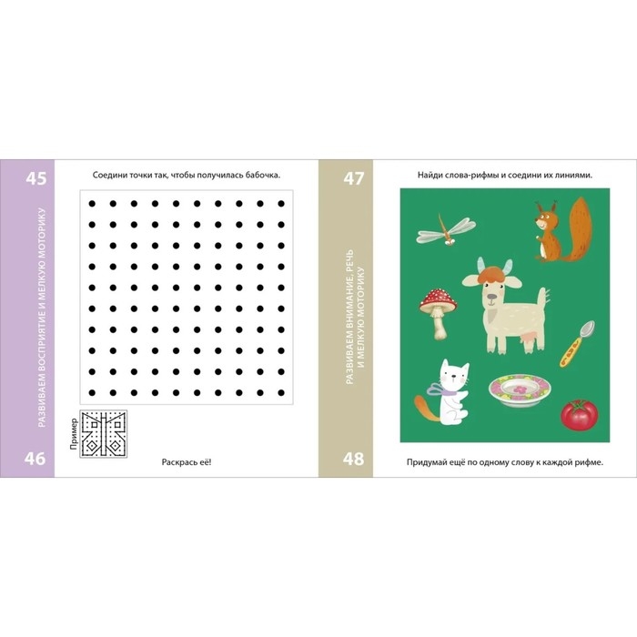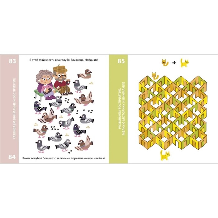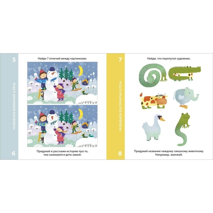 - Задания рассчитаны на детей от пяти лет и направлены на развитие логического, образного и пространственного мышления, внимания и речи, воображения и фантазии, мелкой моторики и зрительного восприятия, навыков счёта и письма.