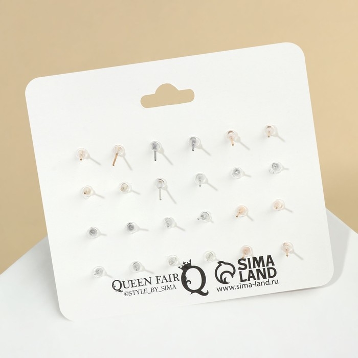 Пусеты 6 пар «Жемчужные» шары, цвет чёрно-белый в серебре