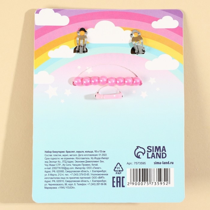 Набор бижутерии «Улыбайся и мечтай» браслет, серьги, кольцо