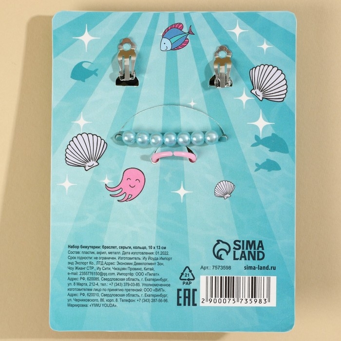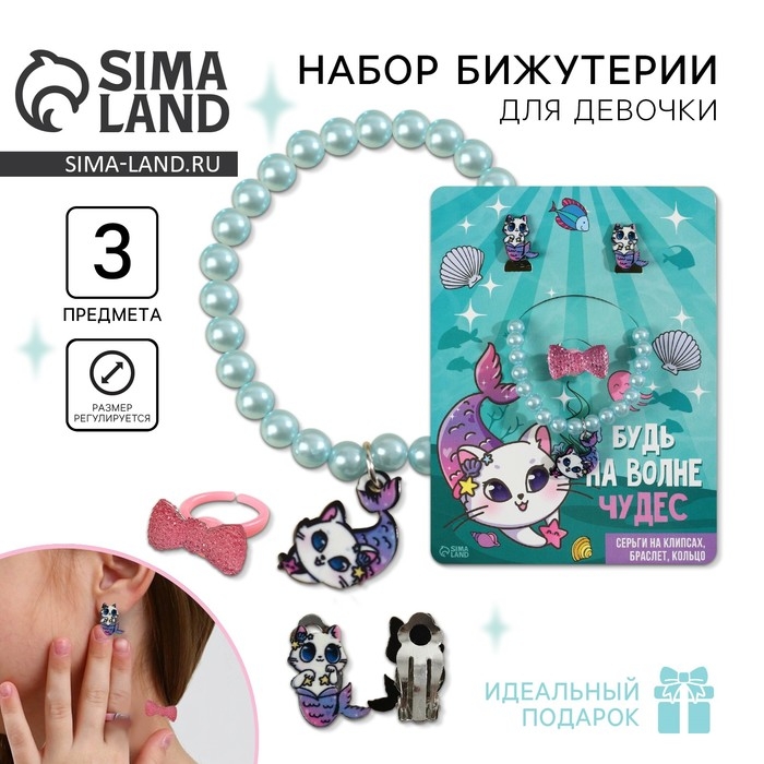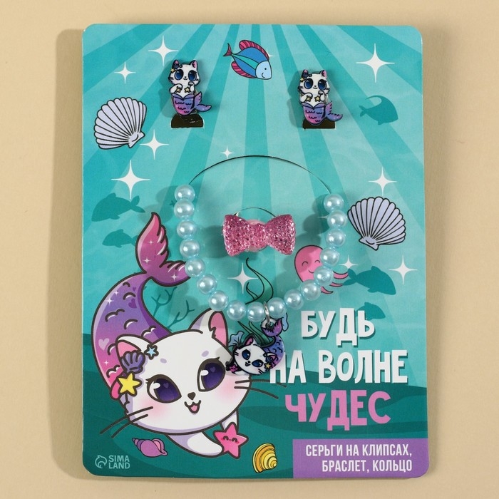 Бижутерия «Будь на волне чудес» набор для девочек: браслет, серьги, кольцо