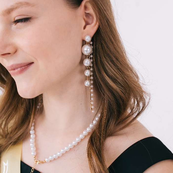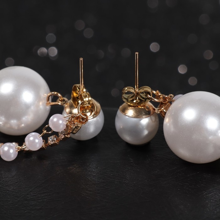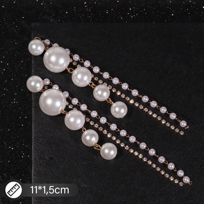Серьги с жемчугом «Дорожка» на увеличение, цвет белый в золоте