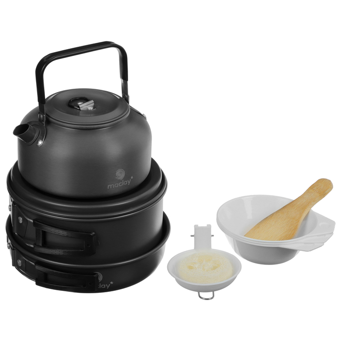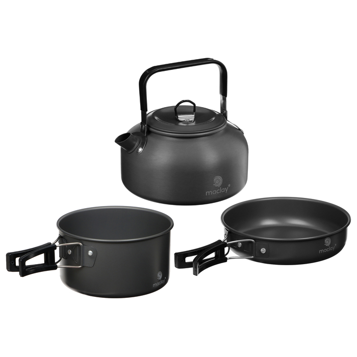 Набор туристической посуды Maclay: чайник, кастрюля, сковорода, 3 чашки, черпак, лопатка, губка