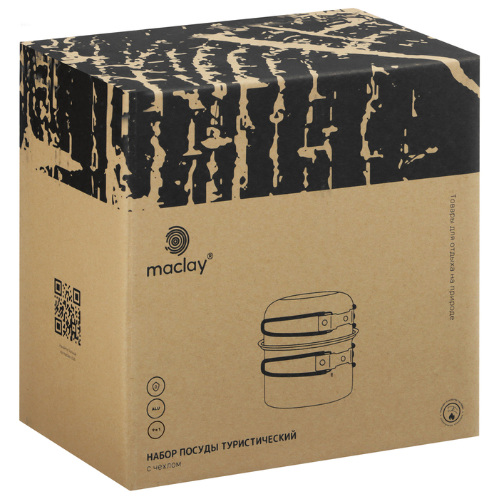 Набор туристической посуды Maclay: 2 кастрюли, приборы, горелка, штопор, тряпка, карабин