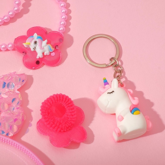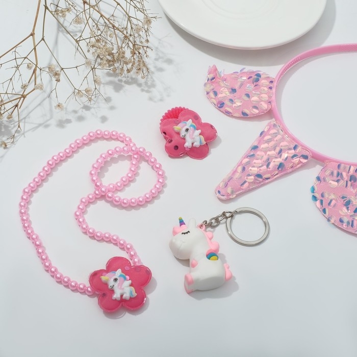 Набор детский «Выбражулька» 5 предметов: ободок, резинка, кулон, браслет, брелок, единорог, цветной