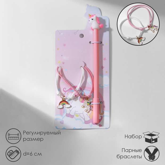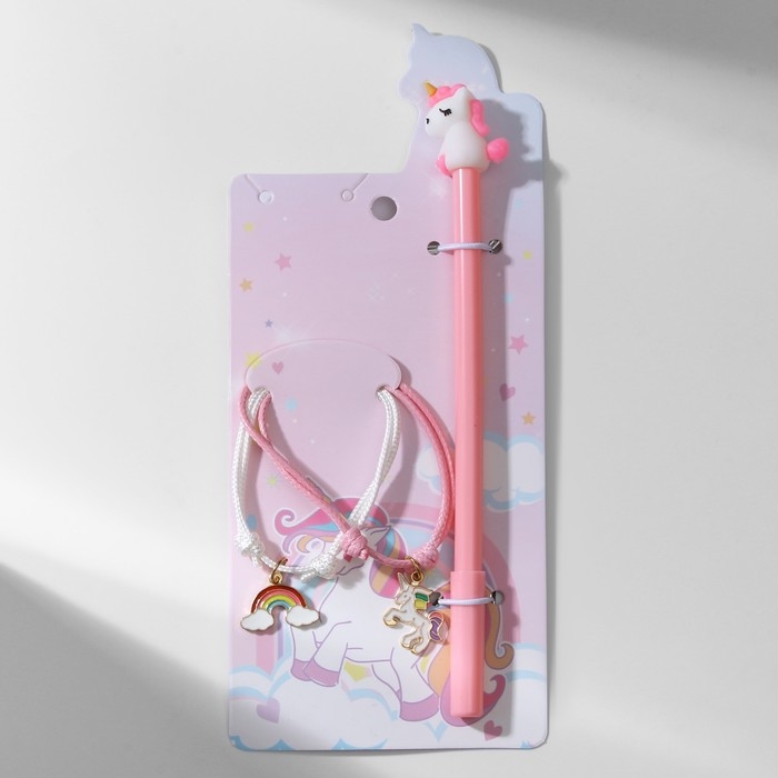 Набор 3 предмета: 2 браслета, ручка «Неразлучники» единорог, цветной, 6 см