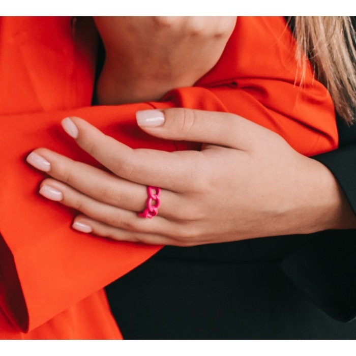 Кольцо Amore цепь, цвет розовый, безразмерное