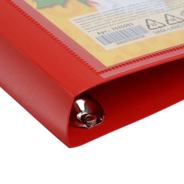 Папка-портфолио А4, Calligrata "Переменка", пластиковая, на 4 кольцах, для школьника, без вкладышей