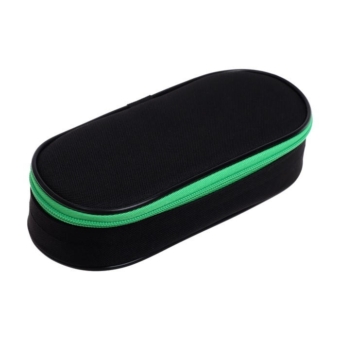 Пенал-футляр 85 х 210 х 50 мм с откидной планкой, мягкий, текстильный, Оникс, ПМК 24-42 Black, чёрный/ярко-салатовый