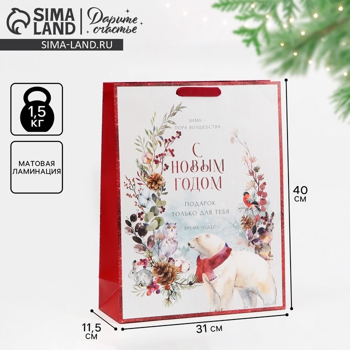 Пакет подарочный новогодний ламинированный «Время чудес», L 31 х 40 х 11,5 см, Новый год