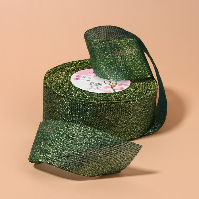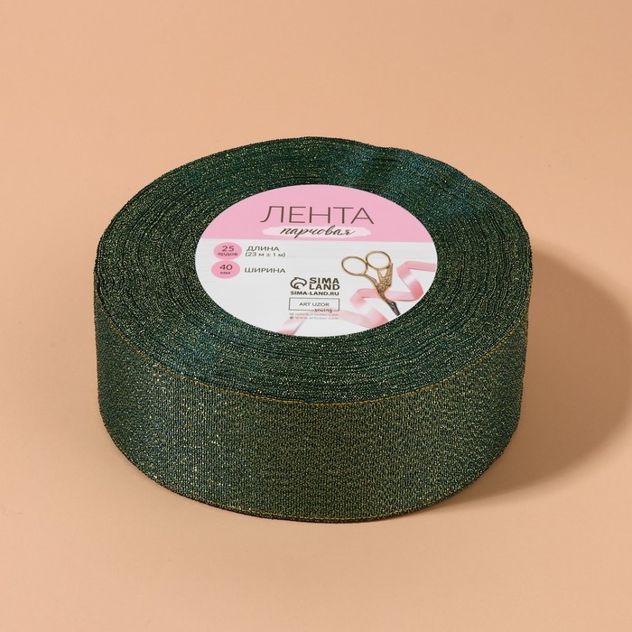 Лента парчовая, 40 мм, 23 ± 1 м, цвет зелёный