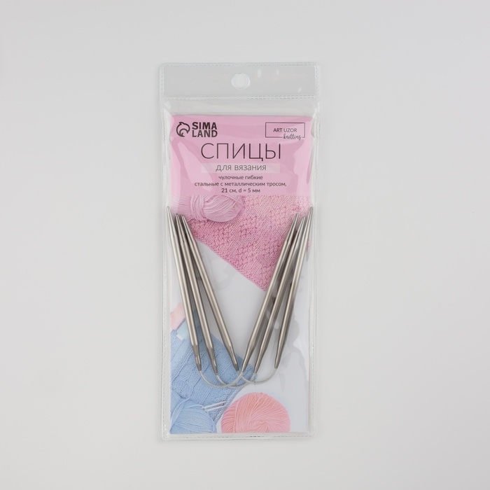 Спицы для вязания, чулочные, гибкие, d = 5 мм, 21 см, 3 шт