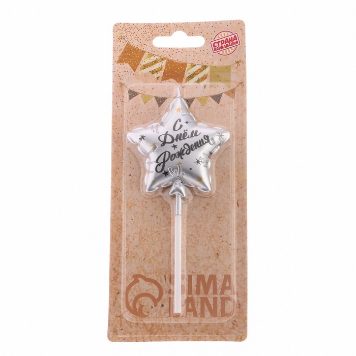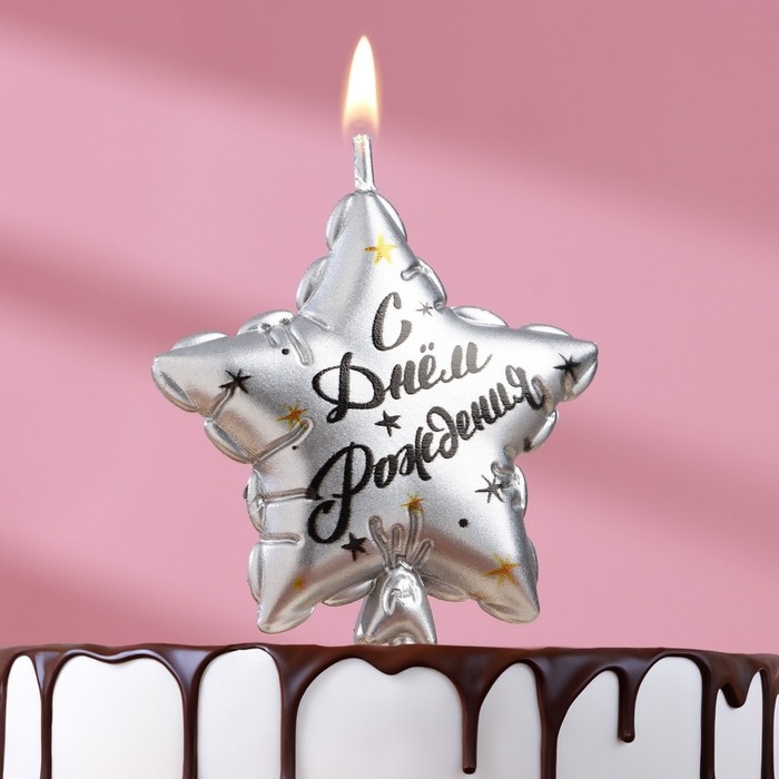 Свеча в торт на шпажке "Воздушный шарик.Звезда", 5,5 см, серебряная