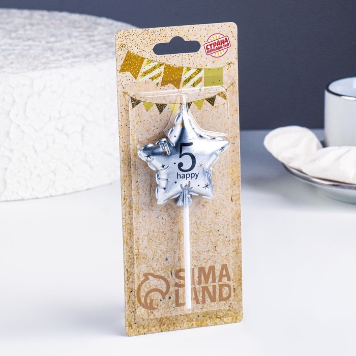 Свеча в торт на шпажке "Воздушный шарик.Звезда", цифра 5, 5,5 см, серебряная