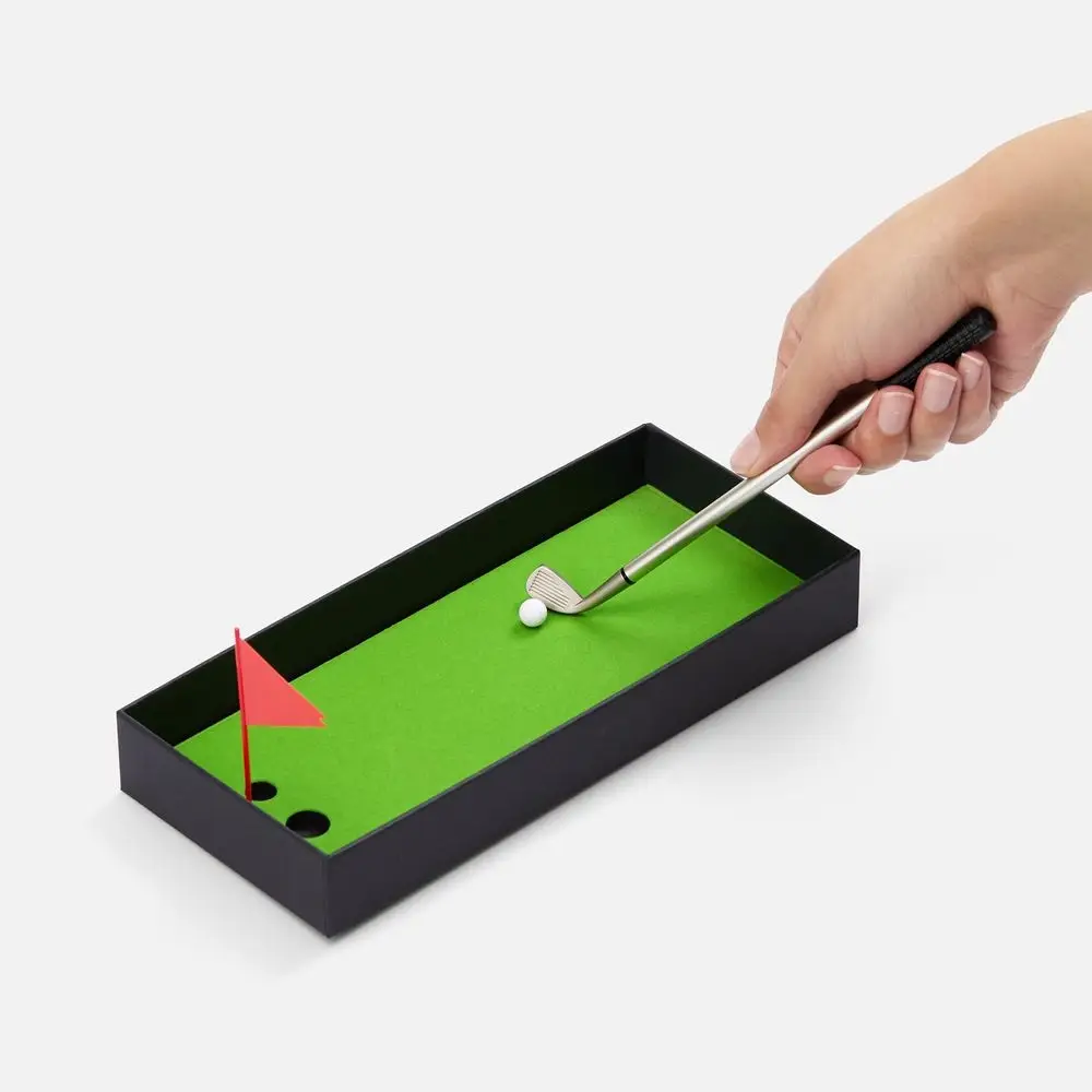 В комплект входят 3 клюшки, 2 мячика для гольфа, флажок и подарочная коробка, крышка которой также служит полем для гольфа. Цель игры — забить мяч в лунку, используя специальные клюшки. Игроки по очереди делают удары, стараясь попасть в цель.Чем меньше ударов потребуется, тем больше очков заработаете.