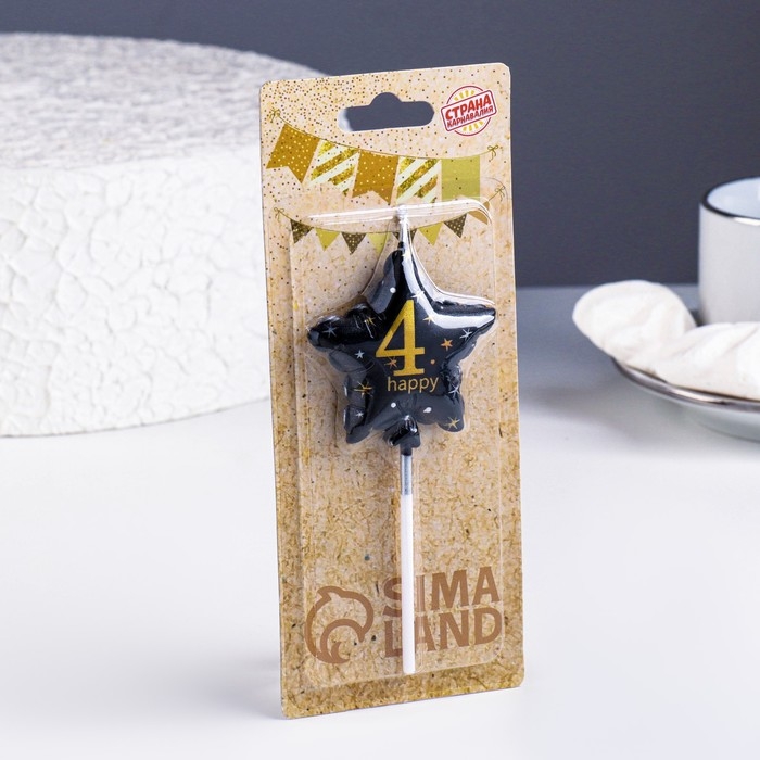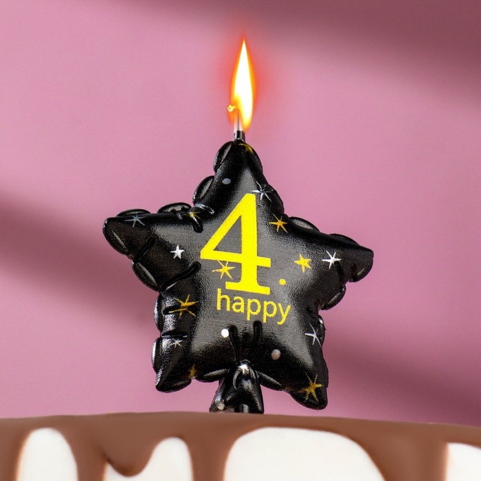Свеча в торт на шпажке "Воздушный шарик.Звезда", цифра 4, 5,5 см, черная с золотом