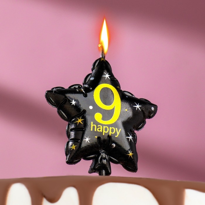 Свеча в торт на шпажке "Воздушный шарик.Звезда", цифра 9, 5,5 см, черная с золотом
