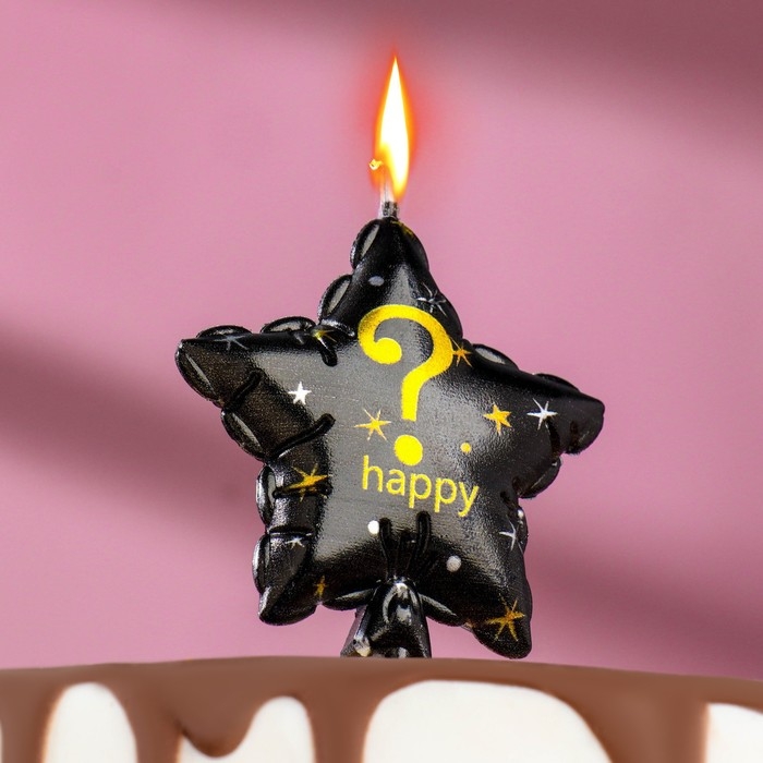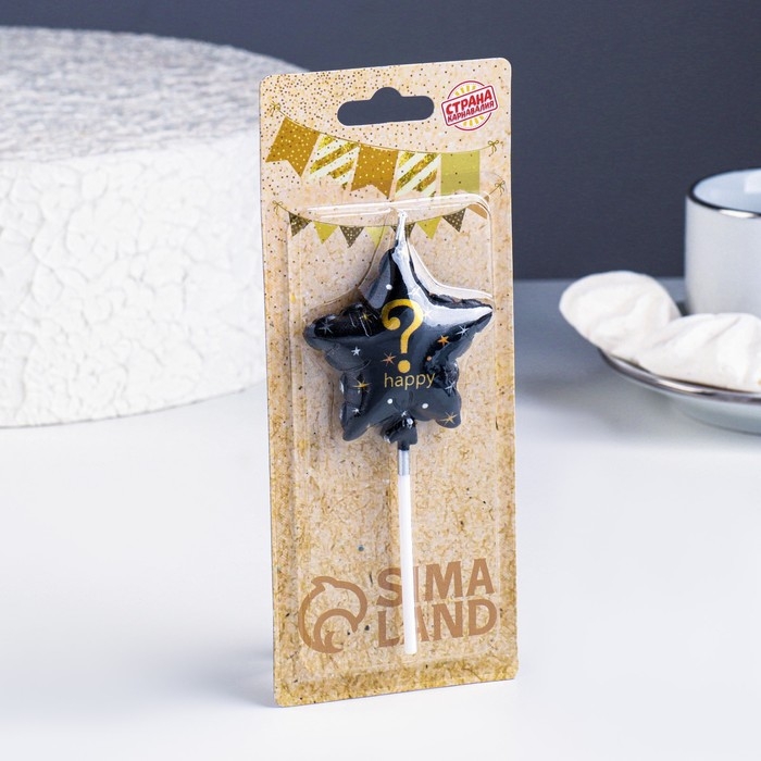 Свеча в торт на шпажке "Воздушный шарик.Звезда", знак вопроса,5,5 см, черная с золотом