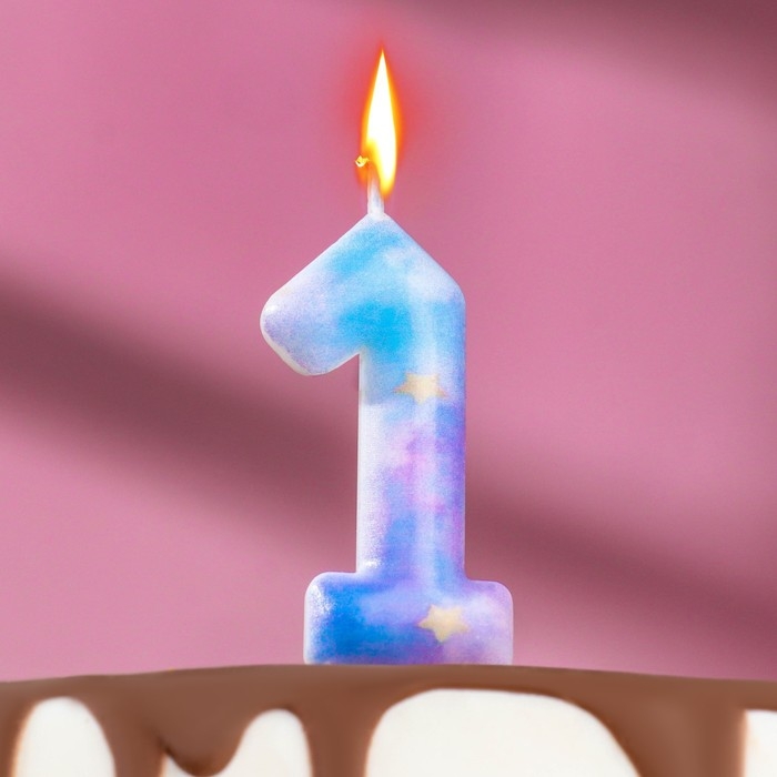 Свеча для торта, цифра «1», синяя, 2 х 13 см