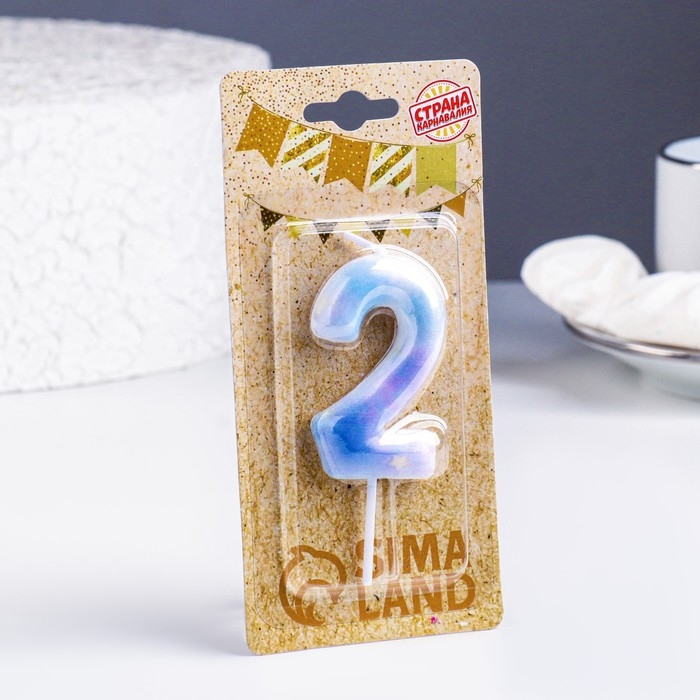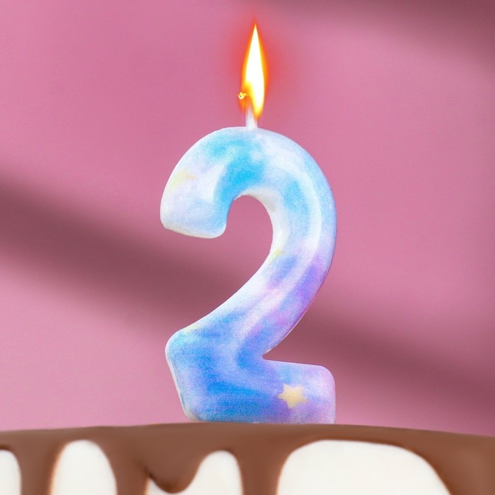 Свеча в торт на шпажке "Звездопад", цифра 2, 5,5 см