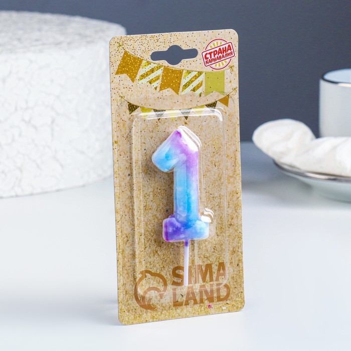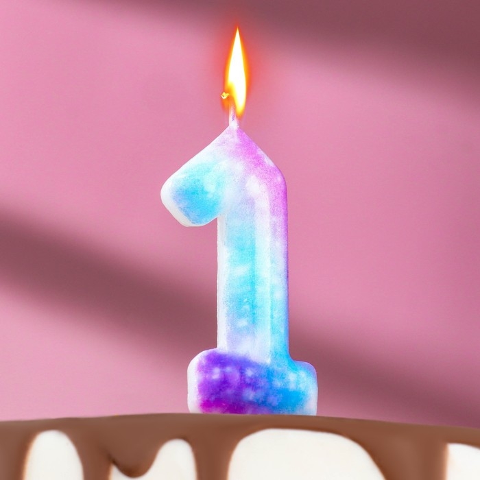 Свеча в торт на шпажке "Галактика", цифра 1, 5,5 см