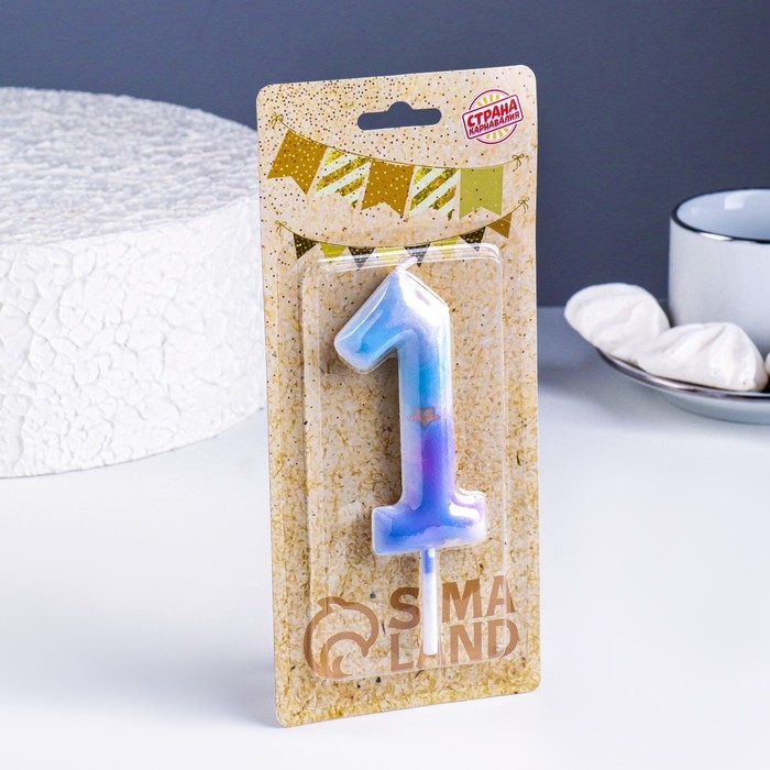 Свеча в торт на шпажке "Галактика", цифра 1, 9 см, ГИГАНТ