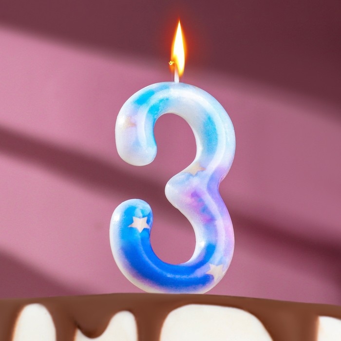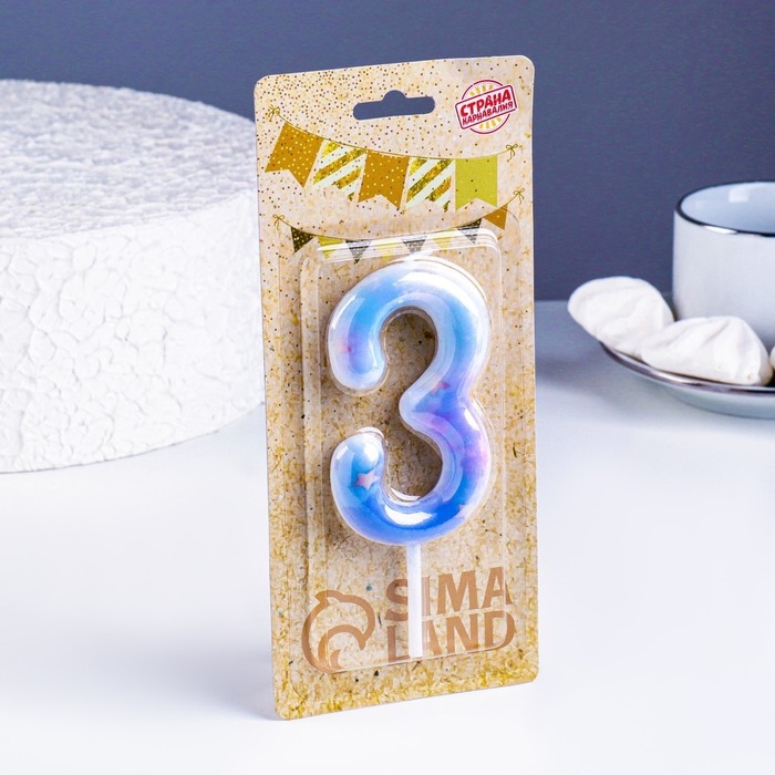 Свеча в торт на шпажке "Звездопад", цифра 3, 9 см, ГИГАНТ