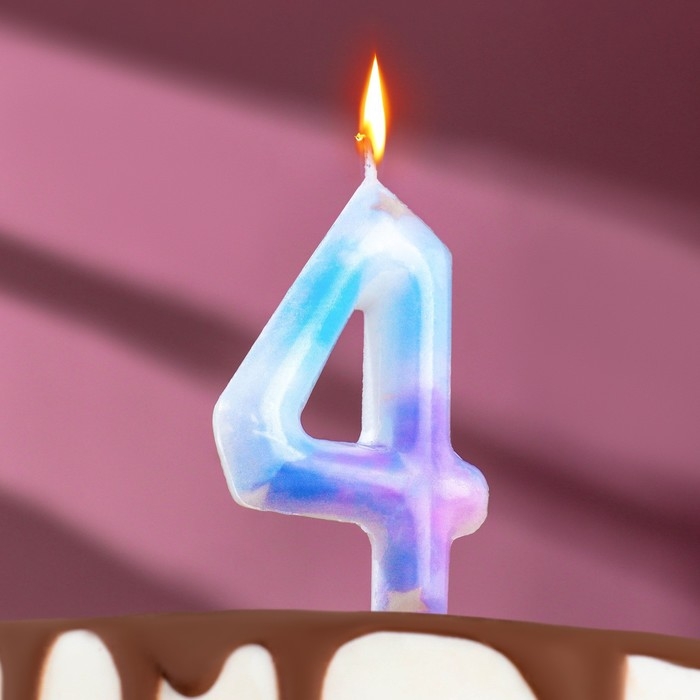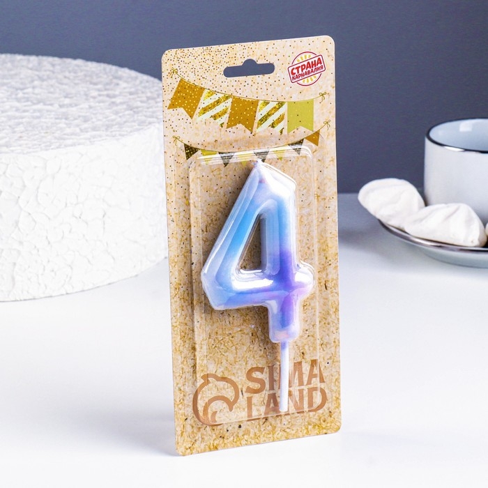 Свеча в торт на шпажке "Галактика", цифра 4, 9 см, ГИГАНТ