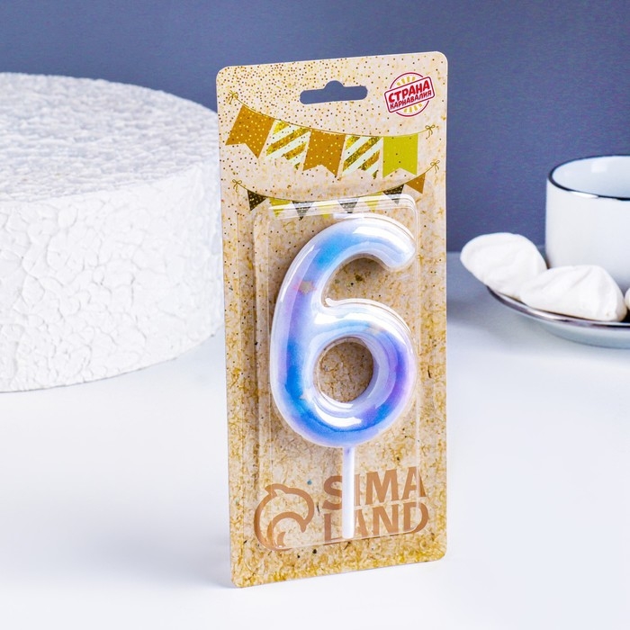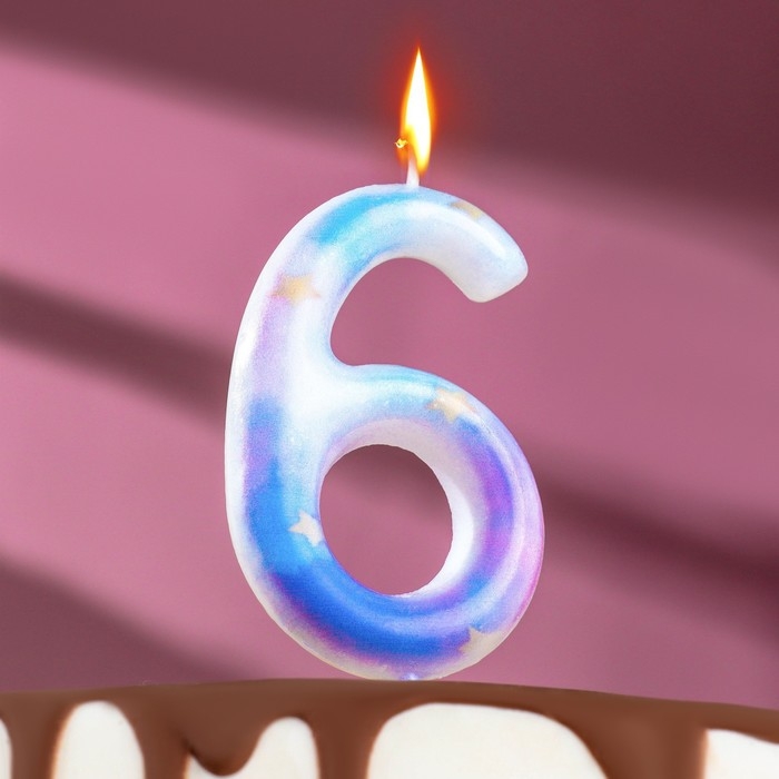 Свеча в торт на шпажке "Звездопад", цифра 6, 9 см, ГИГАНТ