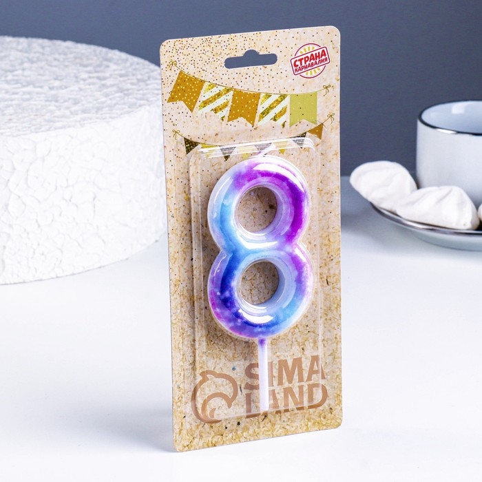 Свеча в торт на шпажке "Галактика", цифра 8, 9 см, ГИГАНТ