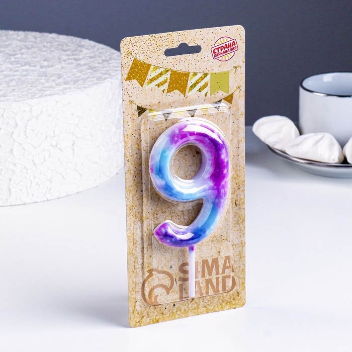Свеча в торт на шпажке "Галактика", цифра 9, 9 см, ГИГАНТ