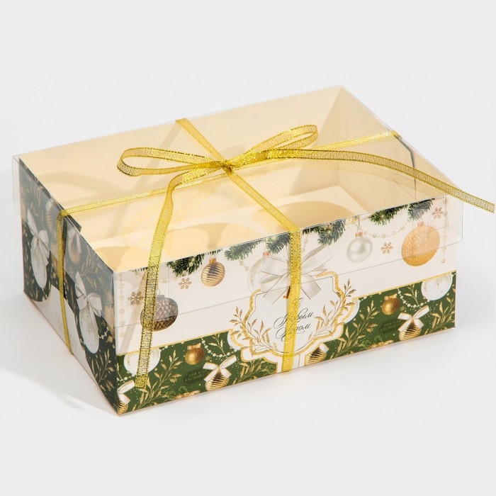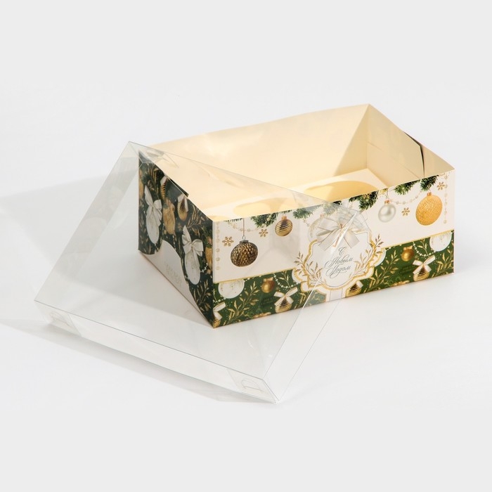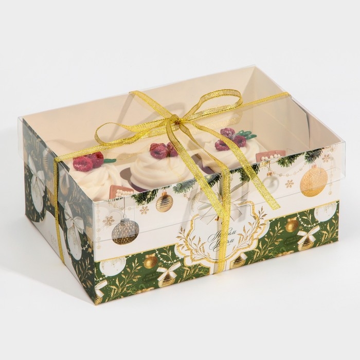 Коробка для капкейка «Бело-золотой», 23 х 16 х 10 см, Новый год