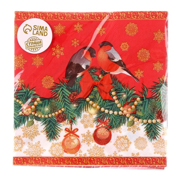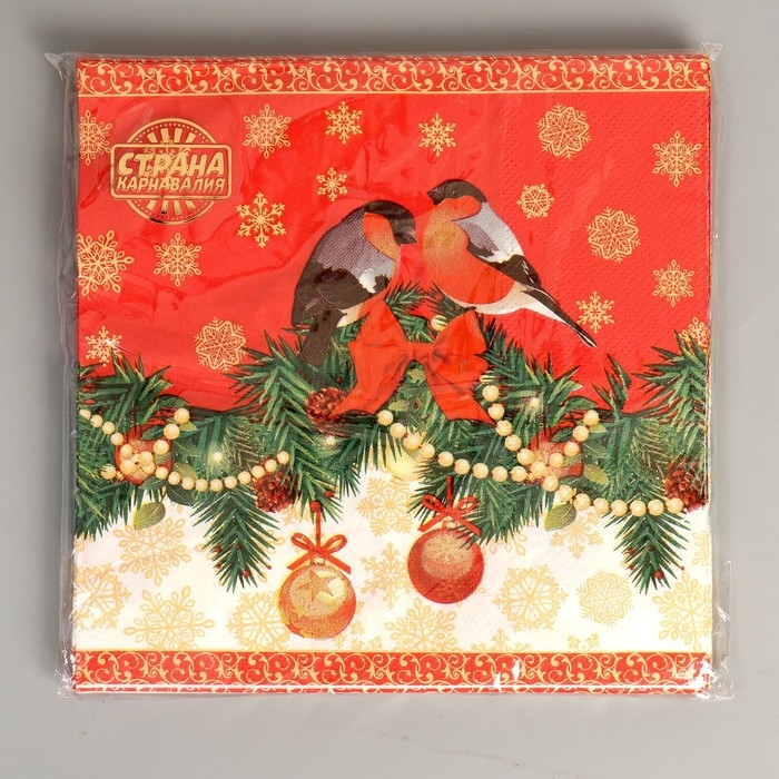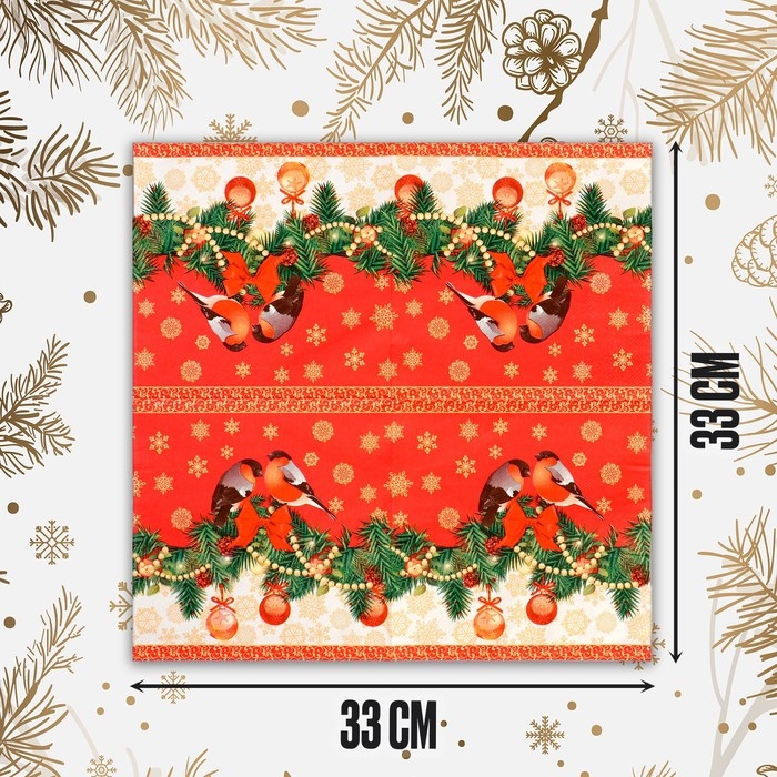 Салфетки бумажные «Снегири», 33 × 33 см, набор, 20 шт