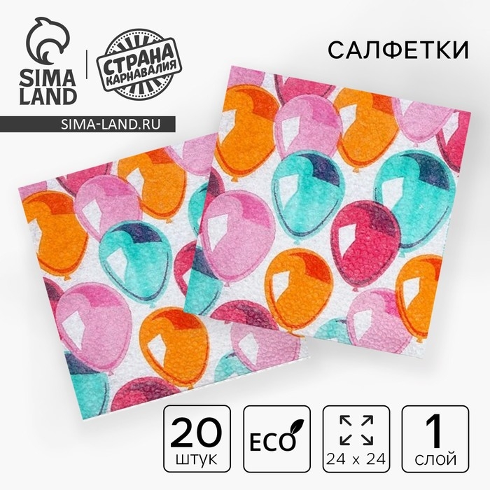 Салфетки бумажные «Воздушные шары», 24х24 см, 20 шт