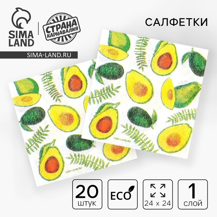 Салфетки бумажные «Сочные авокадо», 24х24 см, 20 шт