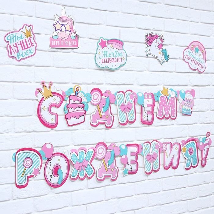 Гирлянда на люверсах с украшениями 5 шт. «С Днем рождения!», нежно-розовый, длина 245 см
