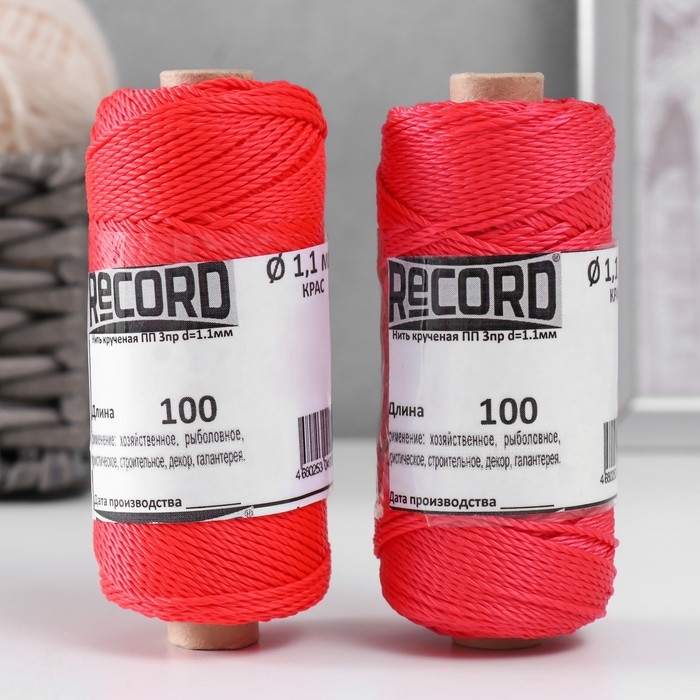 Нить кручёная 3-х прядная полипропиленовая, d=1.1 мм 100 м (красная) МИКС