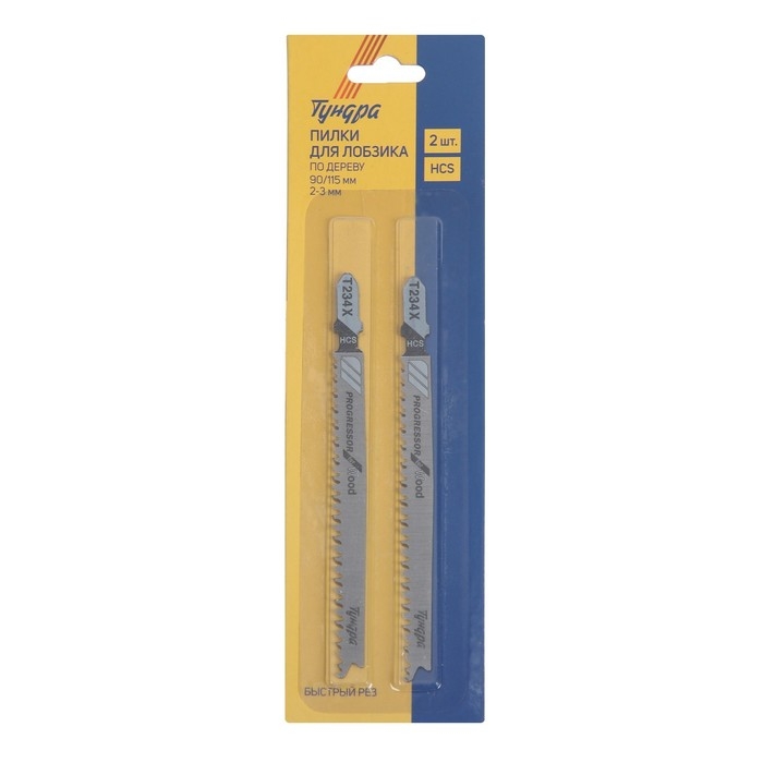 Пилки для лобзиков ТУНДРА, по дереву, быстрый рез, HCS, 90/115 х 2-3 мм, X PROGRESSOR, 2 шт. 73474