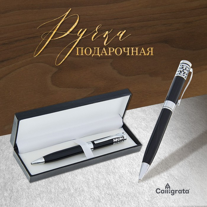 Ручка шариковая, подарочная, поворотная, в кожзам футляре, «Гравюра»