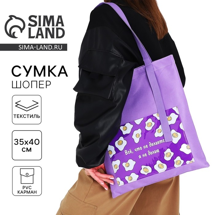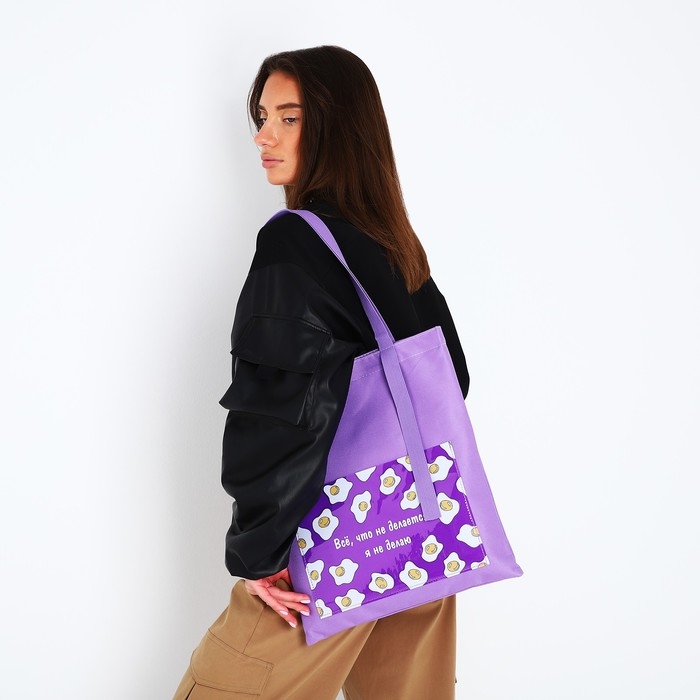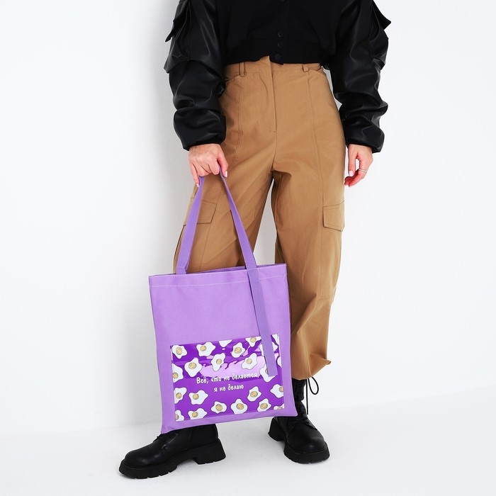 Шопер текстильный «Все, что не делается.» яичница, с карманом 35 х 0,5 х 40 см, цвет сиреневый