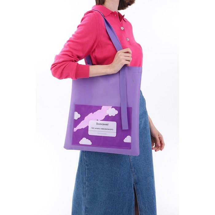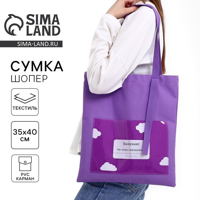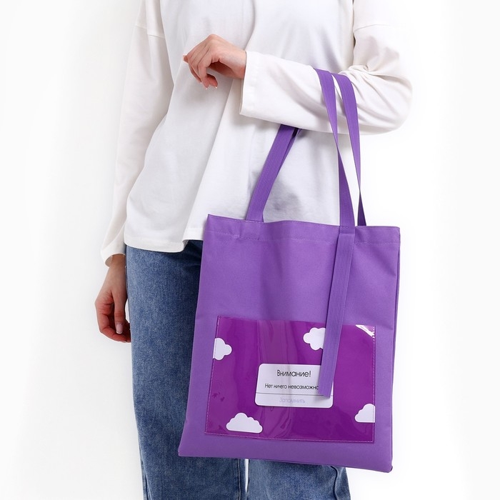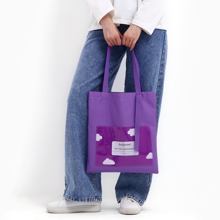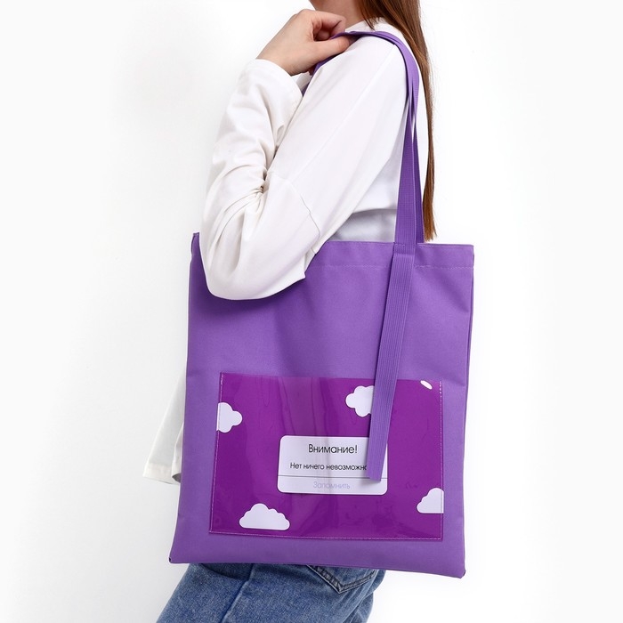 Шопер текстильный «Нет ничего возможного» облако, с карманом, 35 х 0,5 х 40 см, цвет сиреневый