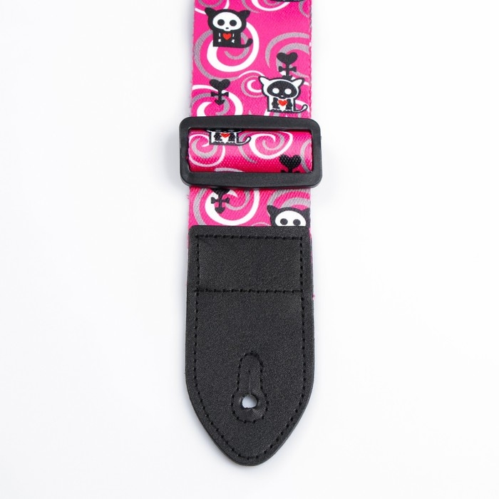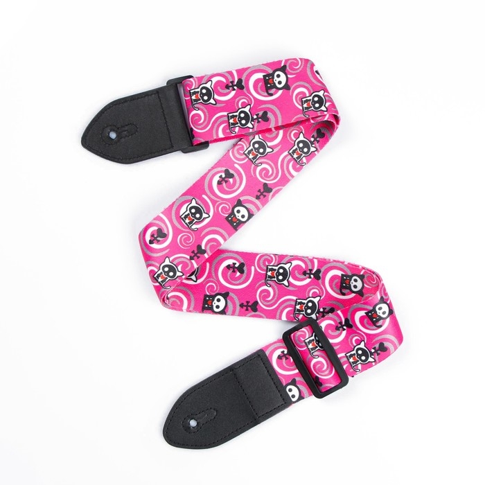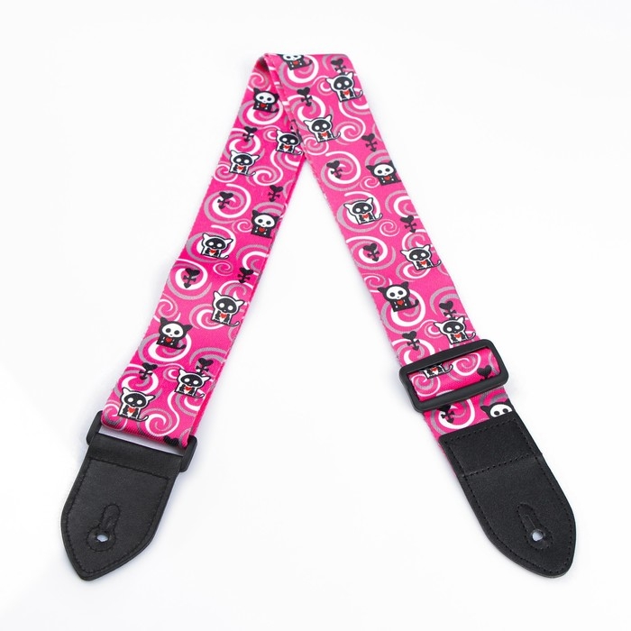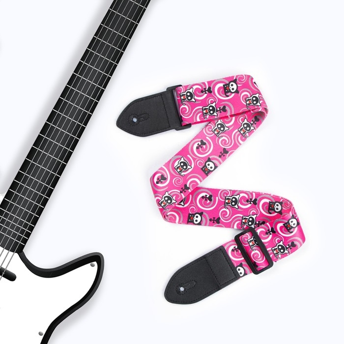 Ремень для гитары, розовый, кошечки, длина 60-117 см, ширина 5 см