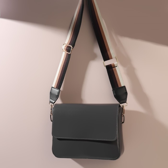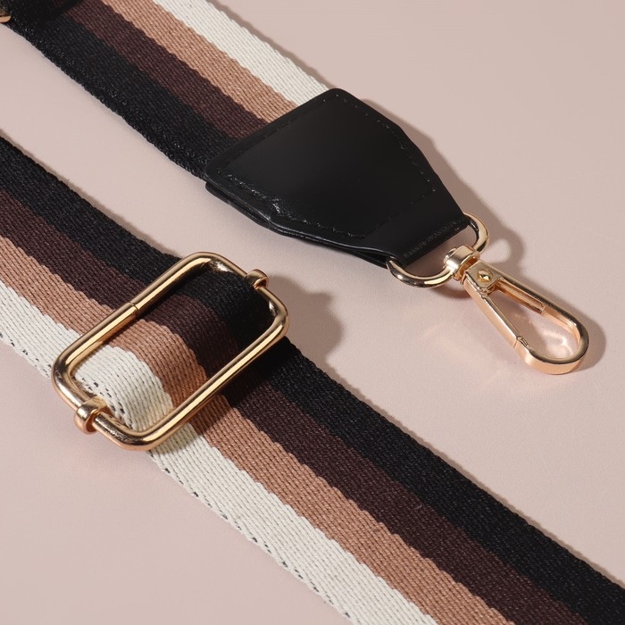 Ручка для сумки, стропа с кожаной вставкой, 139 ± 3 × 3,8 см, цвет чёрный/коричневый/песочный/золотой