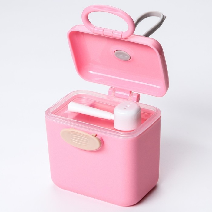 Контейнер для хранения детского питания 150 мл., с ложкой, цвет розовый