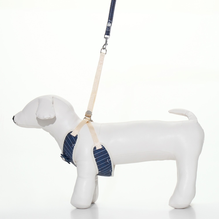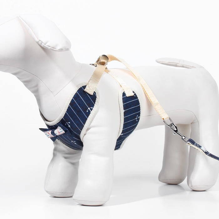 Комплект с мягкой шлейкой "Якорь", размер M, поводок, 120 х 1,5 см, ОГ 34-66 см, синий