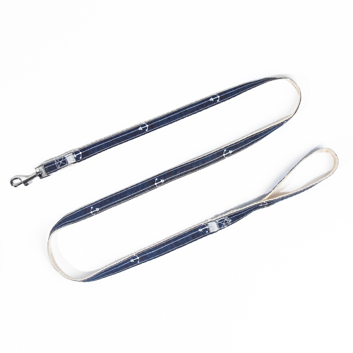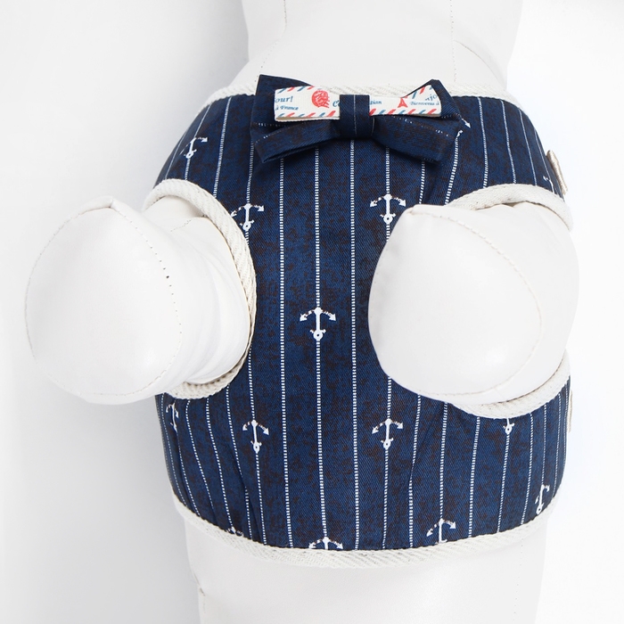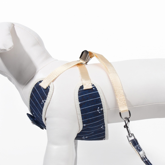 Комплект с мягкой шлейкой "Якорь", размер M, поводок, 120 х 1,5 см, ОГ 34-66 см, синий