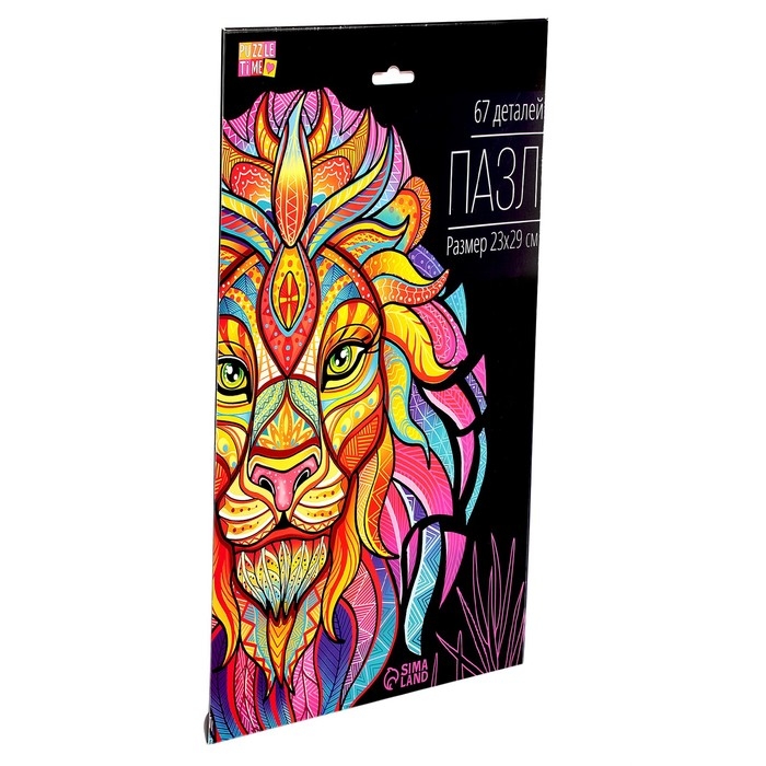 Фигурный пазл в рамке «Лев», на подложке, 67 деталей