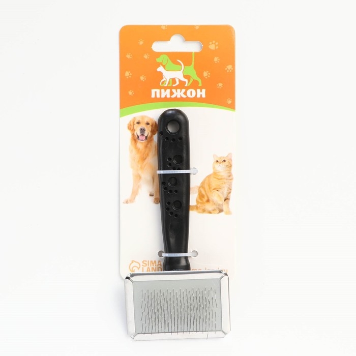 Изделие удобно лежит в руке и не причиняет дискомфорта животному при вычесывании.