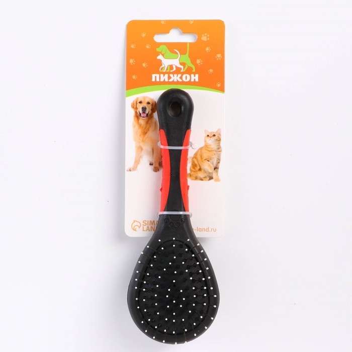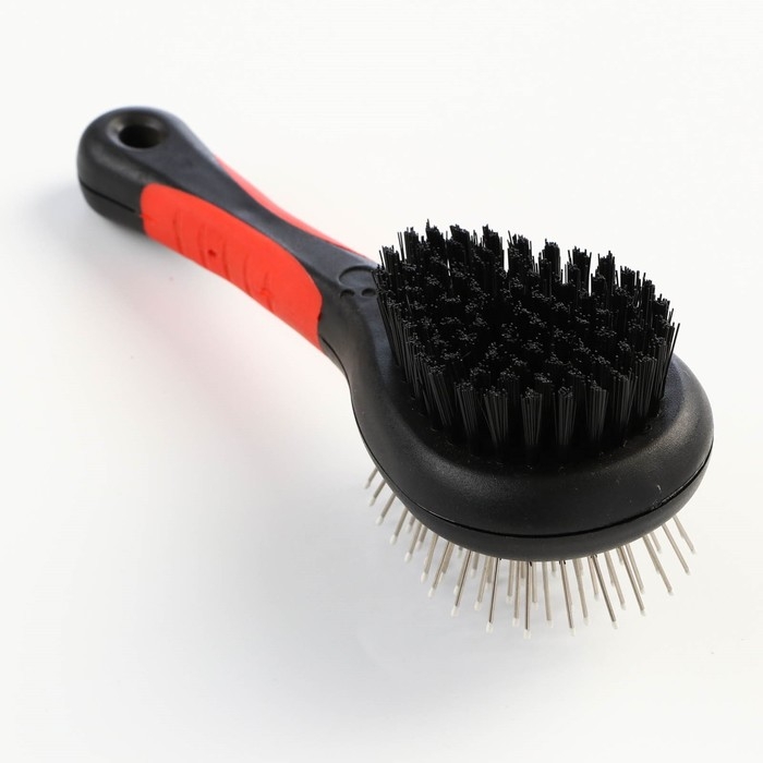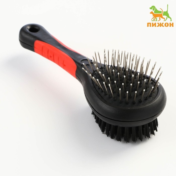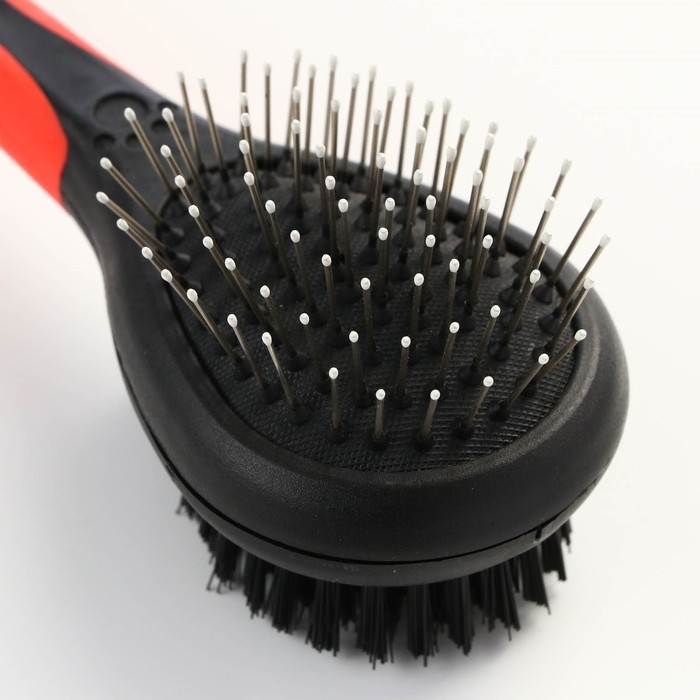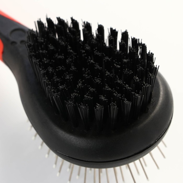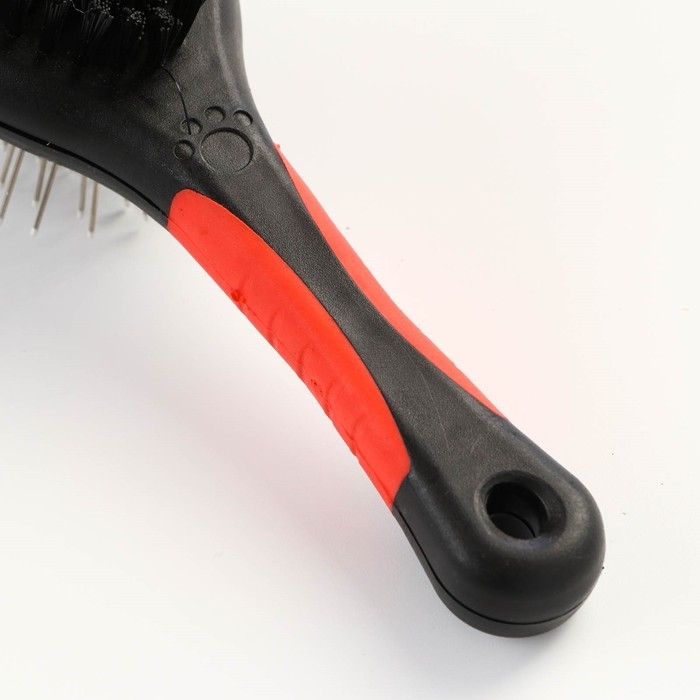Щётка-расчёска двухсторонняя, 17,5 х 6,5 см, нескользящая ручка, чёрно-красная