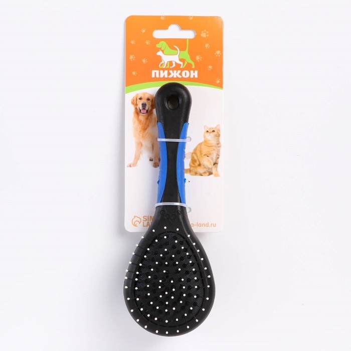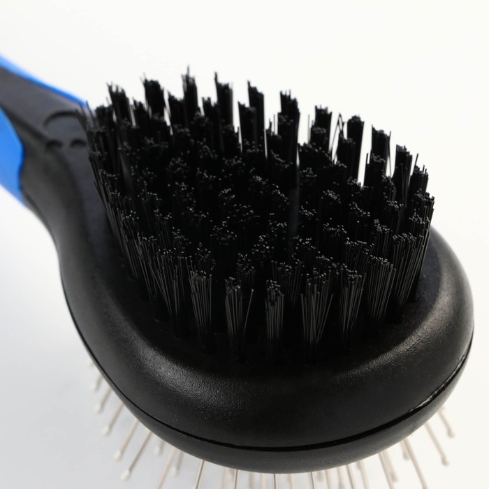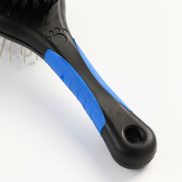 Щётка-расчёска двухсторонняя, 17,5 х 6,5 см, нескользящая ручка, чёрно-синяя