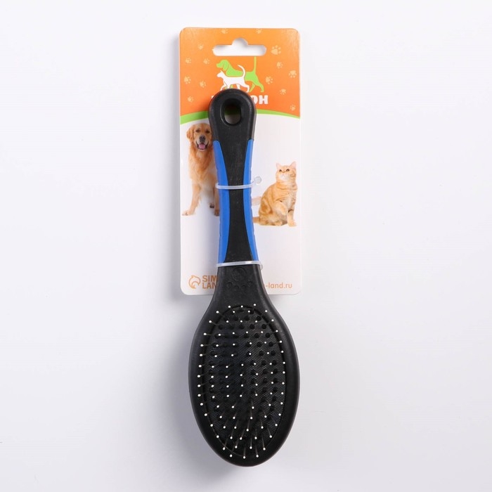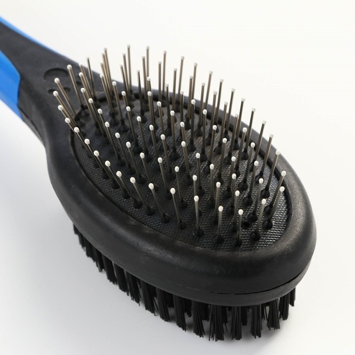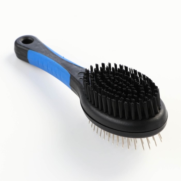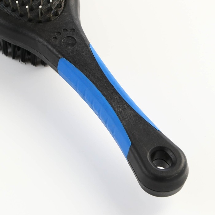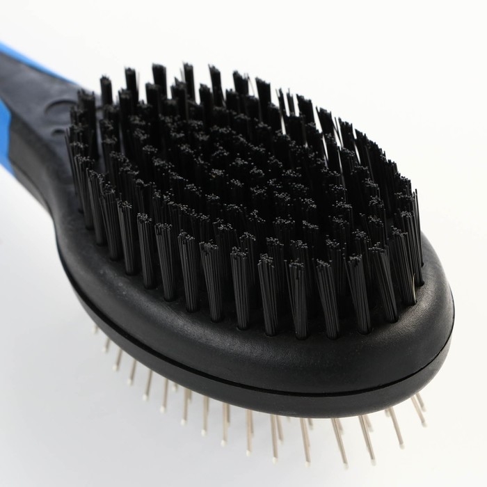 Щётка-расчёска двухсторонняя овальная, 21,5 х 6,5 см, нескользящая ручка, чёрно-синяя